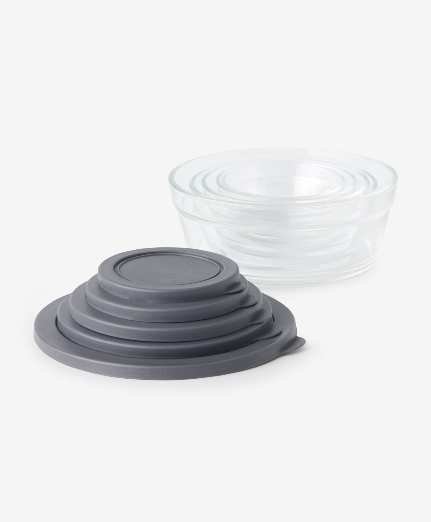 Ένα σετ 5 γυάλινων δοχείων είναι μια πρακτική λύση για την αποθήκευση τροφίμων. Κατασκευασμένα από παχύ γυαλί, τα δοχεία είναι ανθεκτικά και εύκολα στον καθαρισμό. Χάρη στα αεροστεγή καπάκια, τα προϊόντα που αποθηκεύονται μέσα τους παραμένουν φρέσκα για μεγαλύτερο χρονικό διάστημα. Δοχεία διαφόρων μεγεθών επιτρέπουν την εύκολη αποθήκευση συστατικών διαφορετικών μεγεθών.