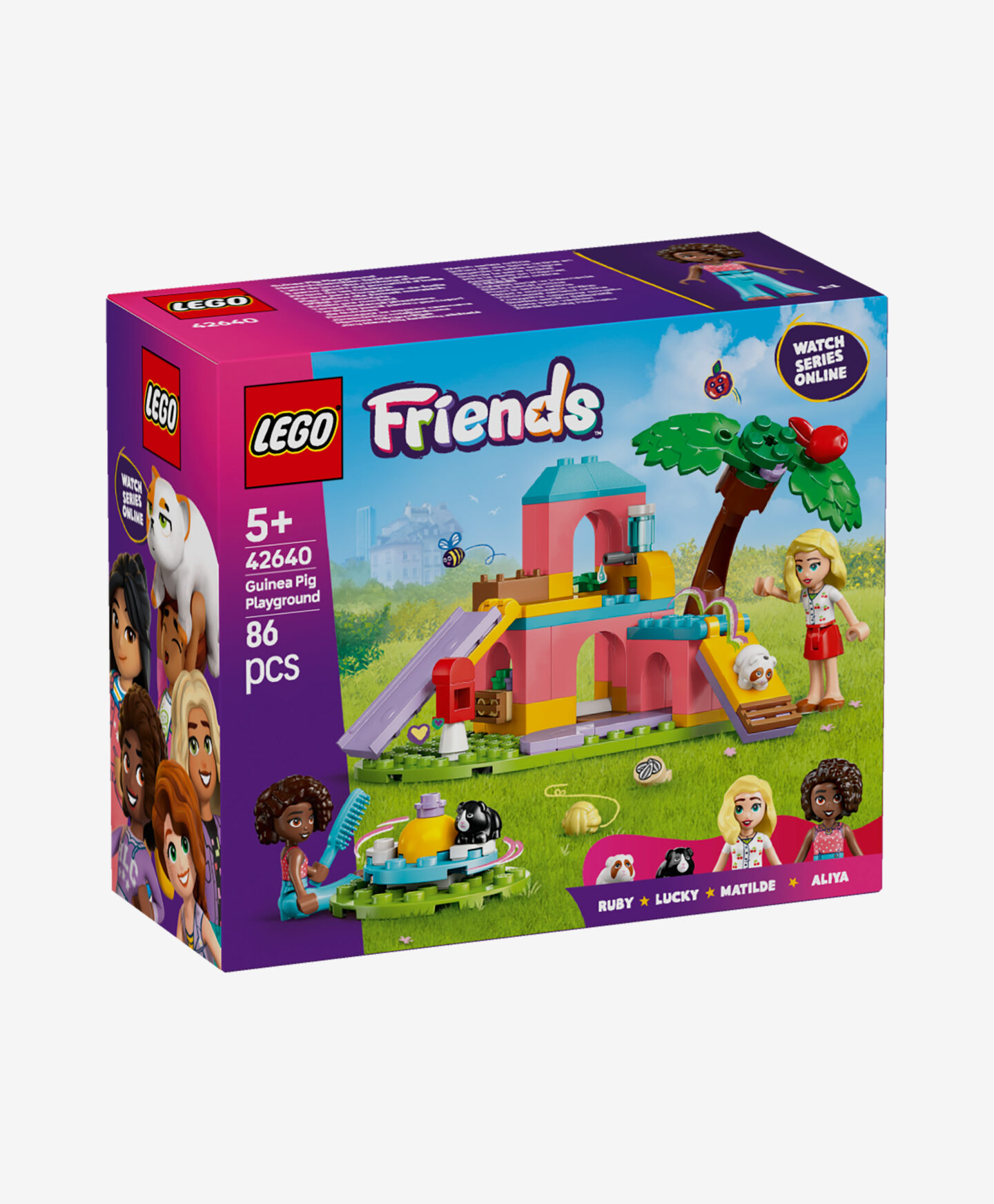 Το LEGO® Friends Guinea Pig Playground δίνει στα παιδιά την ευκαιρία να φροντίσουν τα αξιολάτρευτα ζωάκια. Το σετ περιλαμβάνει μια πολύχρωμη πίστα με εμπόδια, ένα καρουζέλ και αξεσουάρ, δημιουργώντας έναν χώρο γεμάτο αξιοθέατα για τις φιγούρες των ινδικών χοιριδίων.