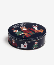Το στρογγυλό κουτί ξεχωρίζει με το βαθύ μπλε σκούρο χρώμα και το χαρούμενο εορταστικό θέμα του. Είναι ιδανικό για την αποθήκευση γλυκών, αλλά και μικρών δώρων ή ως συσκευασία δώρου. Με αυτό, ακόμη και μια μικρή χειρονομία αποκτά μαγικό χαρακτήρα. Διατίθενται διάφορα σχέδια στην προσφορά.