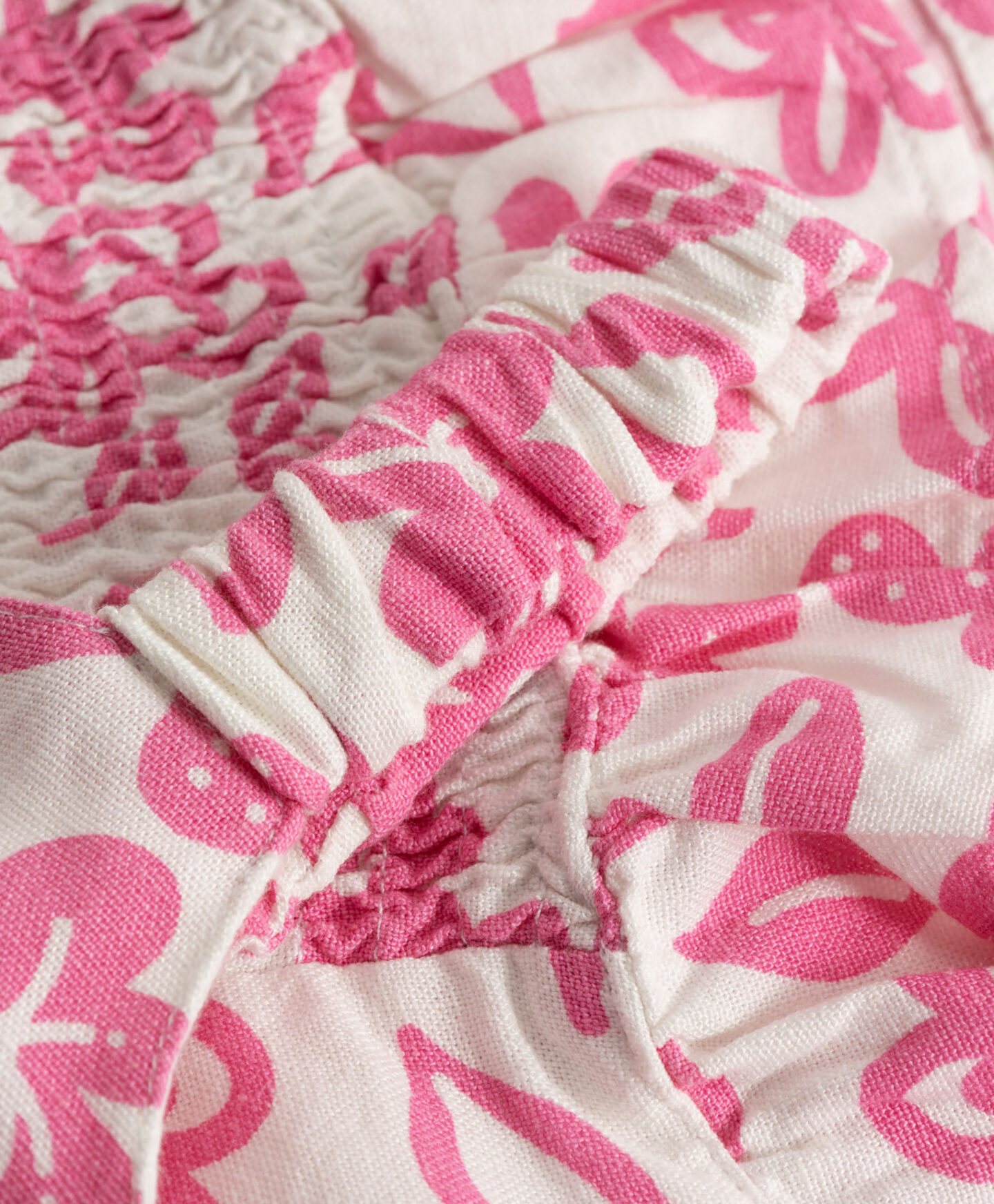 Το τοπ με βολάν από μείγμα βισκόζης και λινού είναι η πεμπτουσία της καλοκαιρινής μόδας για κορίτσια. Έχει τέλεια κοπή για να μην περιορίζει τις κινήσεις κατά το παιχνίδι. Το εκφραστικό floral σχέδιο και το εντυπωσιακό βολάν το κάνουν αδύνατο να το αγνοήσεις! Ταιριάζει υπέροχα με κλασικό τζιν, ελαφριά φούστα και floral παντελόνι σε σετ.