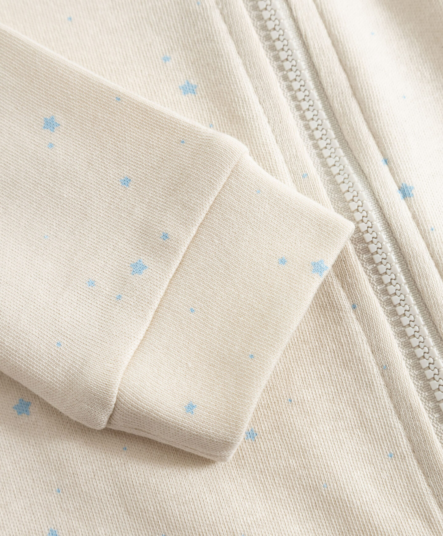 Το φορμάκι για μωρά αγόρια από 100% οργανικό βαμβάκι διαθέτει ένα βολικό φερμουάρ στο μπροστινό μέρος, που κάνει το ντύσιμο του μικρού σας εύκολο και την αλλαγή του εξίσου εύκολη. Τα μακριά μανίκια και τα πόδια αγκαλιάζουν απαλά το δέρμα, εξασφαλίζοντας ζεστασιά και άνεση σε κάθε κίνηση. Το διακριτικό σχέδιο με αστέρια προσθέτει μια πινελιά γοητείας στις στιγμές που περνάτε μαζί.