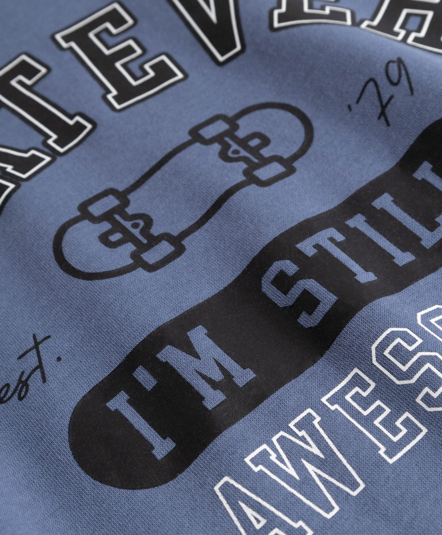 Το φούτερ για αγόρια με σχέδιο skateboard στο μπροστινό μέρος είναι το ιδανικό ρούχο για καθημερινή χρήση. Είναι κατασκευασμένο από μαλακό ύφασμα με βαμβακερή σύνθεση, αγκαλιάζει απαλά το δέρμα και εξασφαλίζει άνεση. Η κλασική γραμμή του εξασφαλίζει ελευθερία κινήσεων. Διατίθεται και ασορτί φούτερ.