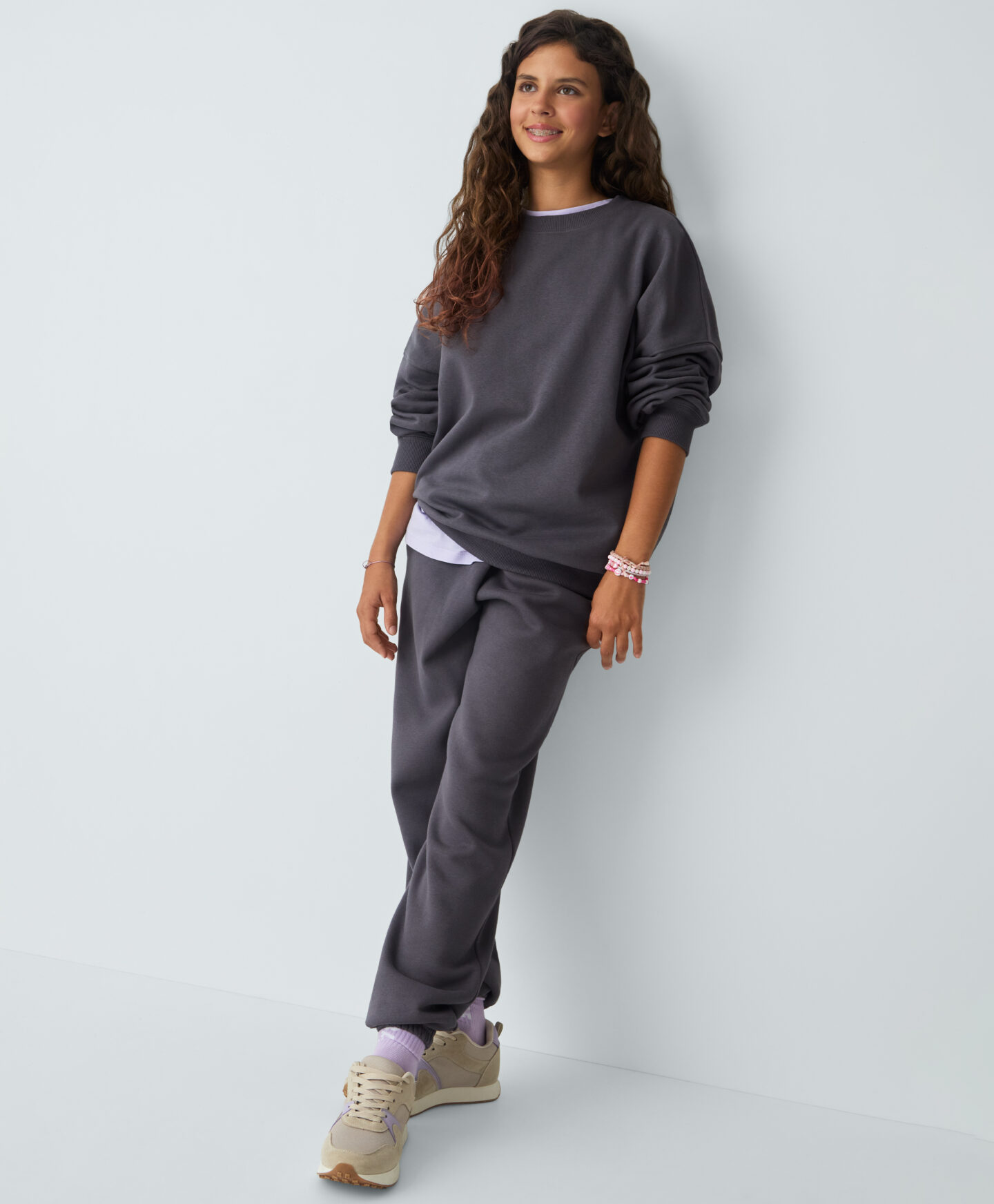 Το φούτερ για κορίτσια από βαμβάκι, με μοντέρνο oversized κόψιμο, είναι ιδανικό για όσους αγαπούν την άνεση σε μια κομψή έκδοση. Είναι απαλό στην αφή, ζεστό και προσφέρει ελευθερία κινήσεων στο παιδί σας καθ’ όλη τη διάρκεια της ημέρας. Ιδανικό για το σχολείο, αθλητικές δραστηριότητες ή δραστηριότητες στο ύπαιθρο το Σαββατοκύριακο. Διατίθενται αθλητικά παντελόνια στο ίδιο χρώμα.