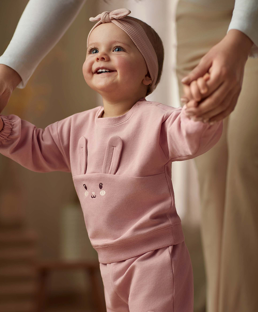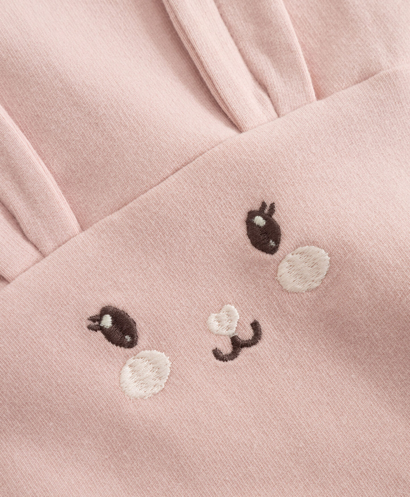 Το φούτερ για μωρά κορίτσια με 3D αυτιά θα είναι υπέροχη στις οικογενειακές φωτογραφίες. Το σχέδιο με το λαγουδάκι στο μπροστινό μέρος είναι εντυπωσιακό και κάνει το φούτερ να ξεχωρίζει από τα άλλα ρούχα. Το μαλακό ύφασμα με υψηλή περιεκτικότητα σε βαμβάκι εξασφαλίζει άνεση από τις πρώτες στιγμές. Διατίθεται και παντελόνι που ταιριάζει.