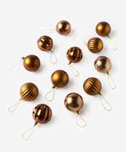 Το σετ από καφέ πλαστικά στολίδια προσθέτει μια πινελιά ζεστασιάς στις διακοσμήσεις. Η ανθεκτική στην θραύση ποιότητά τους κάνει το σετ ιδανικό για ένα πολυάσχολο σπίτι.