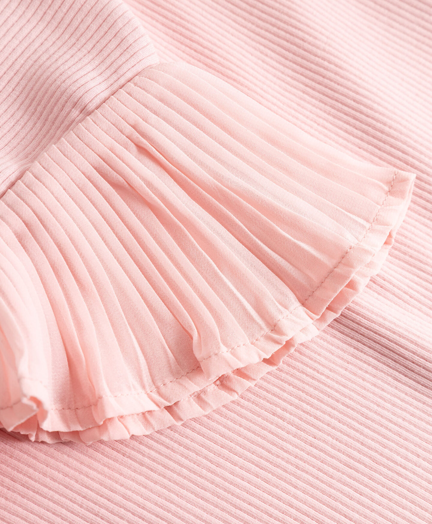 Αυτό το παστέλ χρώμα t-shirt για κορίτσια θα ενθουσιάσει κάθε μικρή κυρία. Είναι κατασκευασμένο από ριμπ ύφασμα και είναι άνετο στη φθορά. Τα πλισέ μανίκια από σιφόν προσθέτουν κομψότητα και ελαφρότητα, δημιουργώντας μια εντυπωσιακή αντίθεση με το λείο σώμα. Η διακριτική εμφάνιση αυτού του t-shirt το καθιστούν ιδανικό για κομψά οικογενειακά δείπνα και συναντήσεις με φίλους. Η ευέλικτη γραμμή και το λεπτό χρώμα το καθιστούν ιδανικό για κορίτσια που εκτιμούν τόσο την άνεση όσο και το στυλ. Το t-shirt συνδυάζεται τέλεια με μια πλισέ φούστα και ένα ταιριαστό παντελόνι.