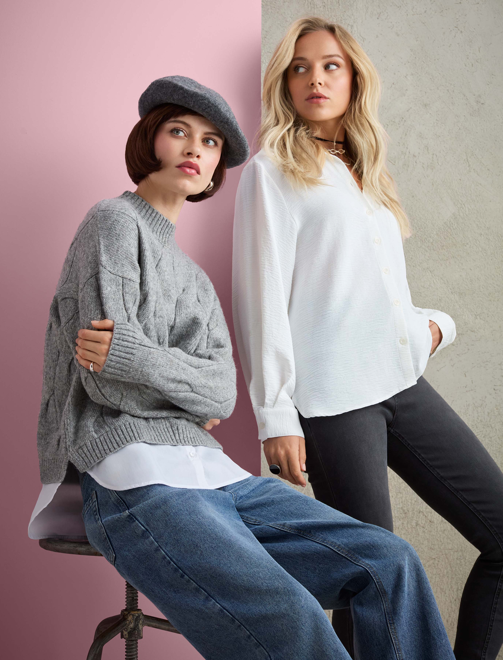 Ανακαλύψτε την τελευταία γυναικεία συλλογή. Σε αυτήν θα βρείτε ζεστά, απαλά και κομψά πουλόβερ, ιδανικά για τη φθινοπωρινή-χειμερινή σεζόν, άνετα σύνολα που θα κλέξουν την καρδιά σας, καθώς και πουκάμισα και τζιν, ιδανικά για καθημερινή χρήση. Το στιλ είναι εδώ, όπως πάντα, σε ελκυστική τιμή!