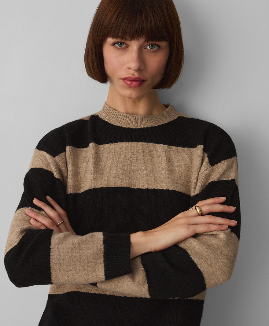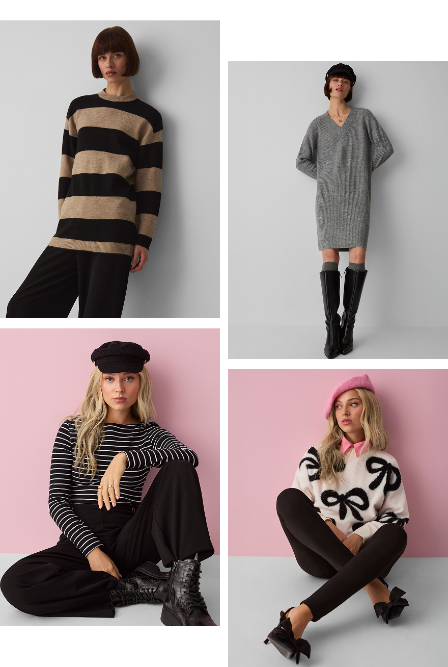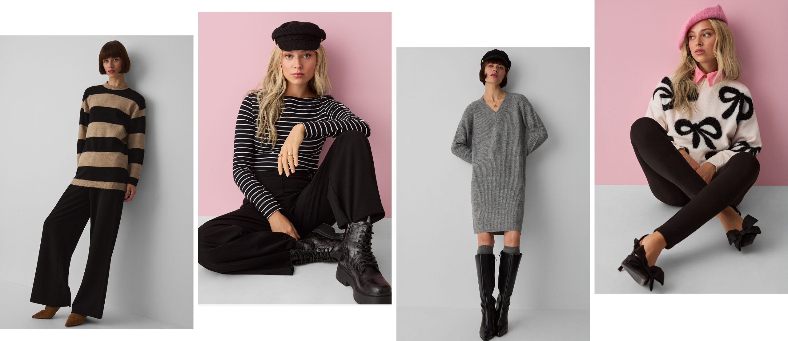 Η νέα συλλογή περιλαμβάνει επίσης κομψά πουκάμισα και πουλόβερ με διαχρονικά ριγέ μοτίβα. Θα προτιμήσετε ένα πουλόβερ ή μια φαρδιά ζακέτα με διακοσμητικά κουμπιά; Η επιλογή είναι δική σας! Εμπνευστείτε και δημιουργήστε το τέλειο σύνολο που αναδεικνύει καλύτερα το προσωπικό σας στιλ.